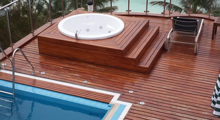 تتميز الغرف بأنها مشرقة ومريحة ويتم تبريدها بتكييف. وتتمتع جميع الغرف بإطلالات على البحر، كما تضم شرفة خاصة وحمامًا داخليًا.