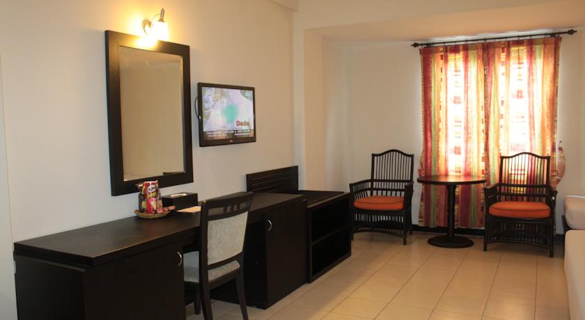 تشتمل الغرف والأجنحة المُكيَّفة على شرفة خاصة وتتميز بمزيج من المفروشات البالية العصرية والتقلييدية، وهي مُجهَّزة بمرافق لصُنع الشاي والقهوة، وتُوفر خدمة الغرف على مدار الساعة. حمامات خاصة تأتي مع مجفف للشعر.